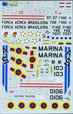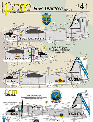 FCM sheets are superbly printedby Microscale and suffer from no registration problems. From the look of things, there are enough data markings to do one Brazilian and one Venezuelan plane. The folks at FCM not only provide full color four views in the markings guide, but also separate stencil guides for both the Brazilian and Venezuelan option.