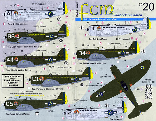 All of the unit's planes were P-47Ds, most of which had the additional fin fillet, though a few did not. This makes it important to pick the proper kit for the plane being modeled. While there are three good kits for this aircraft, the Hasegawa option does not have the fillet, while only a particular boxing of the Revell AG kit has this feature. The one Academy kit I've previewed was also lacking the fin fillet. I'm thinking that perhaps Quickboost does a resin part for this.