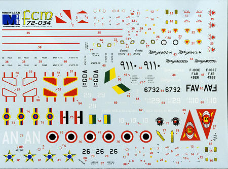 As with other FCM sheets, this one is crisp, in perfect register, and printed by Microscale. The instruction sheet is in full color and includes an upper view in addition to the left/right profiles for those with complex color schemes. In all, a very useful decal sheet to add some uniqueness to your next 1/72 Mirage III/V build.