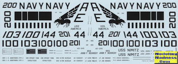 Since this is for the Tamiya kit, all the markings are such that can be used with that version. Note that the majority of the markings are in some variation of the light gull grey over white scheme. Some are as the original with the two color radome while other have the main scheme simply continuing over it. You would expect some CAG birds and so there are some. Except for the two VF-142 options, these schemes will benefit from Furball Aero-Design's new upper wing control surface mask. All of these schemes are from the Tomcat's first years of operation and all are from east coast units.
