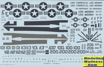 Instructions are superbly done and provide full left/right/upper/lower painting diagrams for the Ferris camouflage schemes. Decals are superbly printed by Cartograf and there are enough common markings for several aircraft. This sheet is designed for the Z-M kit, but I'd bet many of these schemes will work on others. As a final note, the main sheet is just a bit too long for the platen of my scanner so it cuts off the bottom row of slime lights. It also means it won't fit into the standard large zip bag without some minor trimming.