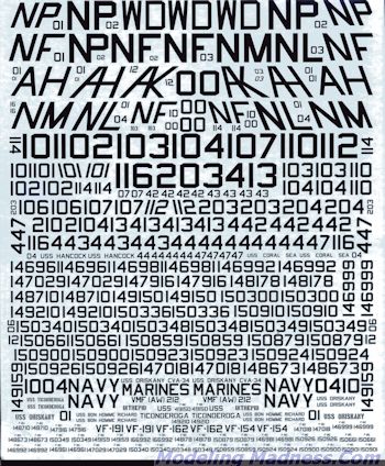 There are two full size decal sheets provided. One is all black and includes nose numbers fin codes and other standard markings. The other has all the unique squadron markings and provides enough insignia and data markings for two aircraft. Those wishing to use more can always use the kit decals for this purpose.