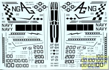VF-102 has two aircraft on the sheet. The first is in the 1993 scheme for an F-14A in the simplified scheme.