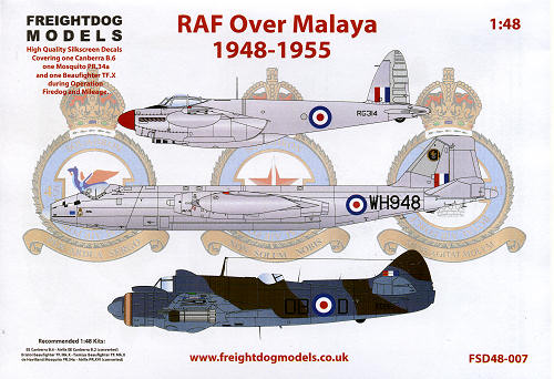Freightdog Decals have been producing some excellent decal sheets in the last year or so. One of their latest is this one on three subjects from the various conflicts in Malaya in which the British and RAF were involved during the post war years.