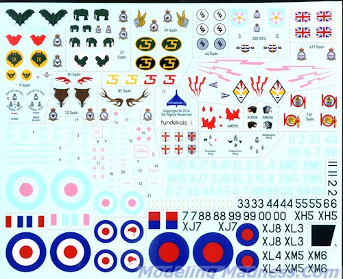 The decal sheet itself is superbly printed and show no errors in registration. Since this is 1/72, you'll either be using the Airfix kit or one of the older vacuformed kits that were produced before Airfix released theirs. What makes these decals somewhat different is that they do not come to you with instructions and require you to download them from their web site. They come in .pdf format and provide markings placement guides for a ton of different aircraft. The instructions are in full color and give upper and lower camo schemes where required. They also provide a full data placement guide for the different schemes. Notes are provided for those aircraft powered by different engines and those adapted for different missions, as there were differences between Vulcans. Finally, the instructions have a number of very nice photos, many of them in full color. In case you are wondering about the RNZAF roundel, that was a zap.