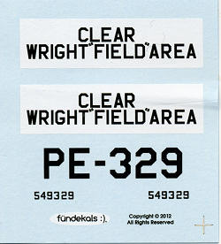 Standard markings with the pre-USAF buzz number under the wing. The sheet is very nicely printed with minimal clear around the decals. You will need to get insignia and any data markings from some other source or the kit as this sheet contains only the unique markings, but at such a low price, I doubt if anyone will complain.