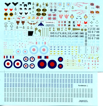 The decal sheet itself is superbly printed and show no errors in registration. Since this is 1/144, you will be using either the resin kit that has been done or the Pit Road/GWH injected plastic version. These decals do not come with instructions and require you to download them from their web site. They come in .pdf format and provide markings placement guides for 26 different aircraft. The instructions are in full color and give upper and lower camo schemes where required. They also provide a full data placement guide for the different schemes. Notes are provided for those aircraft powered by different engines and those adapted for different missions, as there were differences between Vulcans. Finally, the instructions have a number of very nice photos, many of them in full color. In case you are wondering about the RNZAF roundel, that was a zap.