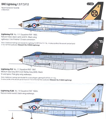 First up is an F.3 from 111sq in bare metal with a black spine/tail. Alternate markings for a less flamboyant 111 plane are provided, though one really needs Warpaint #14 on the BAC Lightning to be able to use this option.