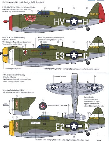 Finally is 'Shiverless', both with and without the name. This 375 FS/361 FG aircraft is offered in both white and yellow cowling motifs. The yellow cowling carries the name while both have the nose art. It also carries white tail ID stripes.