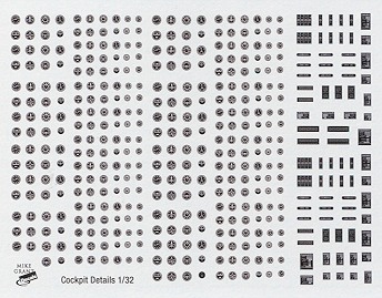 Mike has produced these in two scale; 1/32 and 1/48. Many of the 1/32 dials can be used on 1/48 models and you can probably use some of the smaller 1/48 dials on a 1/72 kit. I've shown the 1/32 sheet, but the 1/48 version is basically the same.