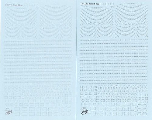One can always count of Mike Grant to produce interesting decal sheets and this one on rivets has to be one of the more unusual. There are two sheets of waterslide decals; one in silver and one in dark grey. These come in a variety of lengths and shapes. There are several that are curved for easy use on different parts of the airframe as well as some for hatches and panels. No scale is given so use them where they will do the most good.