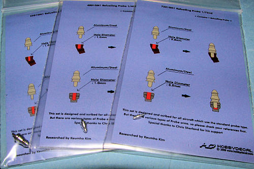 This is a really neat ideal. IFR probes in the various scales. Now I know that many would like to have more than just the tips, but there are so many different configurations, that doing as such is probably the best way to go about it. Like the other probes in this series, one simply drills a hole to mount it in place. This is not for any specific aircraft, but all aircraft that use the 'basket' refueling system will have this probe tip. For those wondering about the part number, just add the scale in front of it. So 72010M1 is 1/72 and so forth.