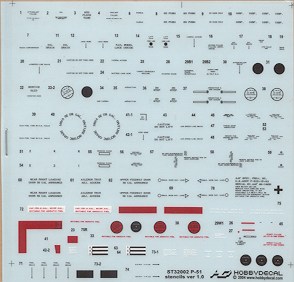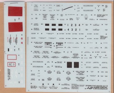 The three in this review are 32001 for the P-47 on the upper left. To the right is 32002 for the P-51. The entire bottom row is 32003 for the FW-190, making for some very comprehensive stencil sheets.