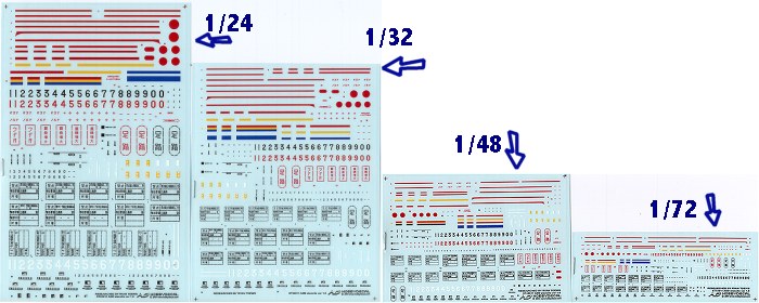 For prices, the 1/24 sheet is $15.98, the 1/32 sheet is $10.98, the 1/48 sheet is $9.48, and the 1/72 sheet is $6.98. If you have your screen resolution set at the recommended size, then what you see here is bit less than half the size of the actual sheet.