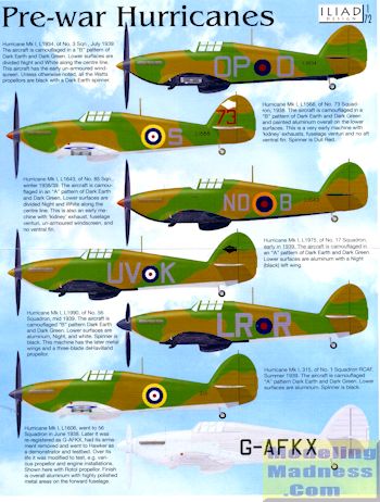 Hurricanes. While the upper and lower markings placement sheet shows metal wing