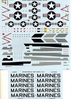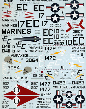 There are enough markings on the sheet to do the Skyknight, the Skyray and two Phantoms. Those wishing to do more will hae to rely on kit decals to help with the common markings.