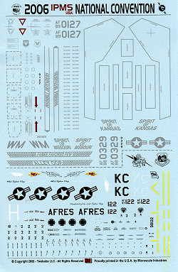 However, since there is no 1/48 B-2, we can assume this is for the Testors kit. There are markings for two B-2s, one being the Spirit of Kansas and the other the Spirit of Missouri. A full set of wing walk markings is provided for the B-2 though not shown.