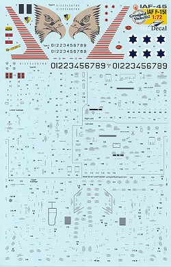 Overall, an excellent sheet that 1/72 modelers will be thrilled to use. Isradecals is bringing out an F-15I conversion set that will make your Ra'am even more accurate than just using an F-15E kit.