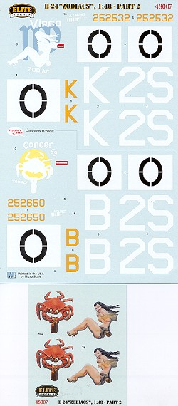 The two B-24s on the sheet are 'Virgo' and 'Cancer'. Elite provides sufficient markings to enable the modeler to do both of the aircraft shown on the sheet. Not shown is an additional sheet with US insignia.