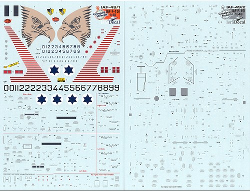 Overall, an excellent sheet that 1/48 modelers will be thrilled to use. Isradecals is bringing out an F-15I conversion set that will make your Ra'am even more accurate than just using an F-15E kit. The only really good F-15E kit in 1/48 is the Revell-Monogram version as the others by Academy and Hasegawa are just warmed over F-15Ds.