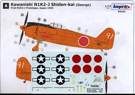 This could well be called 'the first and the last' for the George. This sheet includes markings for two planes. One of them is the initial prototype. This plane would be in overall orange with a black anti-glare panel.
