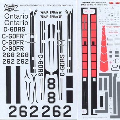 Well, no longer do you have to hide away your CL-215 kit. Blow off the cobwebs, chase out the bugs and get to gluing as Leading Edge has come to the rescue with a great set of decals for this aircraft.