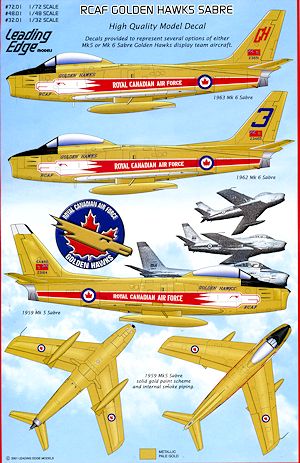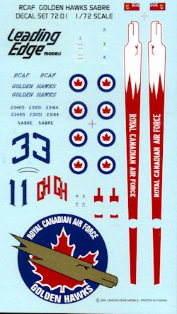 This is a reprint of Leading Edge Models' first sheet and it is a most welcome sheet for Sabre fans. The sheet provides markings from planes flying during the 1959, 1962 and 1963 seasons. Apparently these planes flew with the slats locked in the up position to prevent problems from them deploying during slow formation flying.