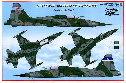 There are markings for the CF-5A and the CF-5D when it was in the Green/Grey wraparound camouflage. While no FS 595 reference is given, There is a full list of available paints in the shades needed provided in the instructions.