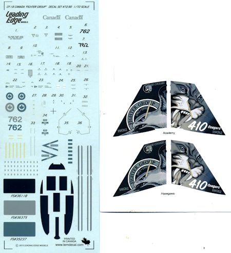 In line with all their sheets, the markings are superbly done and since the two major kits for the F-18 in this scale by Hasegawa and Academy have different size fins, the set includes the fin markings in two different sizes. Now I'm not sure which size will fit the Hobby Boss F-18 or others so if using that one, you'll have to just try one size out to see if it fits.