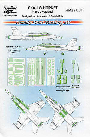 This particular set is for the 1/32 Academy F-18 and is the most complete I've ever seen. Leading Edge wanted to get into the masking business and this is their first set.