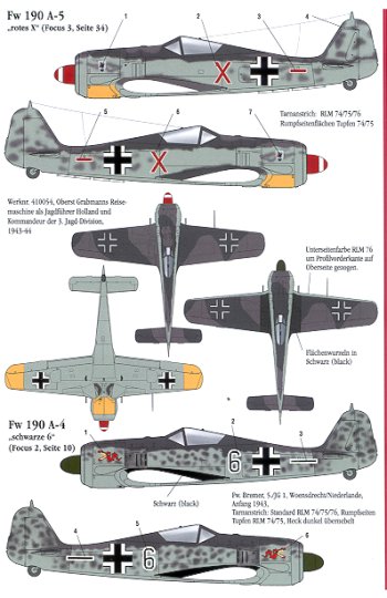 rather thick fuselage and tail mottling. The two 190 schemes are shown in