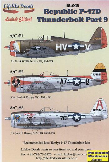 A favorite of many modelers is the P-47 Thunderbolt, while others have little interest in the aircraft. One thing about the P-47 that it has in common with the Mustang is that they often carried some impressive arwork and colors, especially in the last year of the war when the Allies held air superiority.