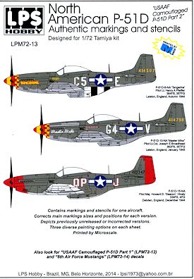 is the second sheet of camouflaged P-51Ds from LPS Hobby in Brazil. This sheet
