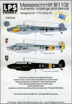 sheet is for the Bf-110. In particular, the newly tooled Airfix Bf-110E, and