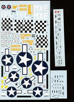 There are enough common markings and stencils to completely do one of the three options. You'll notice that the fuselage insignia are in sections to take care of the turbocharger waste gate doors. Of course, you can use kit decals to do the others should you so wish.