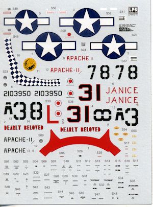 The decals are superbly printed by Microscale. Full color instructions are provided and give you information on some of the little differences between the planes where appropriate. There are enough common markings to do one aircraft, but you can easily find insignia from various sources. A very comprehensive data placement guide is also included.