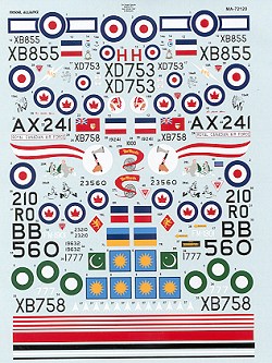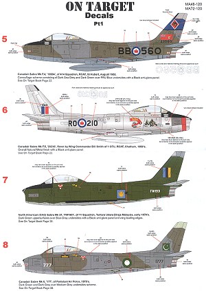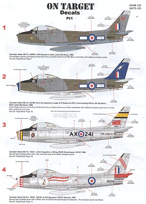 This sheet is the first of two from On-Target's Profile #6 book (which I have not seen - hint), and is based on profiles given there. This sheet is for Canadair and CAC built aircraft and offers a goodly number of subjects.