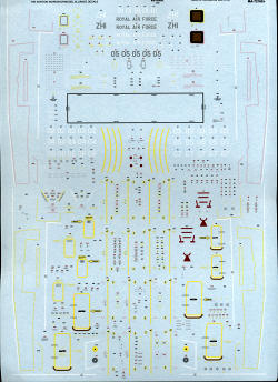 Moving to the Sentinel, this is a new aircraft type to me and looks very much like a J-Stars plane. It is built by Bombardier and I'm unsure of any kits currently available though the instructions state that one may be produced in 2009 or 2010 in 1/72. It has the livery of 5 Squadron, another unit that used to fly Tornado F.3s. Again, enough serial numbers to do any of the five current aircraft.