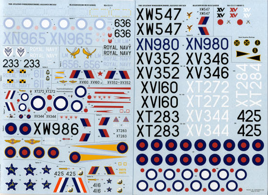 As you'd expect, the two sheets are superbly printed by Cartograf and in vibrant colors. Not shown, for lack of space on the platen, is a set of light blue serials for XV346. In line with some of the other more recent sheets, the instruction booklet has a page devoted to each scheme, each with a four-view and complete color and markings placement information.