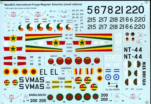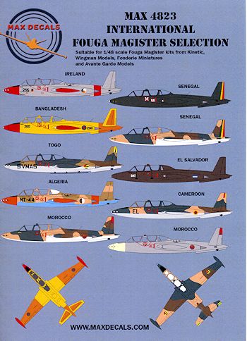 Thanks to the recent release of the Wingman/Kinetic 1/48 Fouga Magisters, Max Decals has provided an excellent set of markings for this as well as the Avant Garde and FM kits.