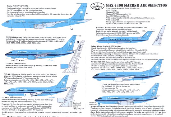 cool decal sheet from Max Decals. This one is for aircraft of Maersk Airlines.