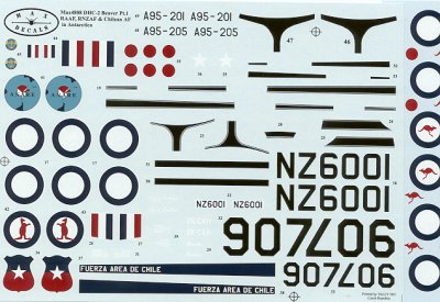 Max Decal's choice for this next series of sheets follows on the very nicely done series on the DHC-3 Otter that was reviewed a bit back. Check the Decal Review pages for those. Your choice of kit in 1/48 is, well, Hobbycraft. They are the only ones who have done the Beaver in this scale and while it is a bit sparse on detail, it is a very good basis for those who like to add stuff to kits. It is available in two boxings. One with skis and one with floats.