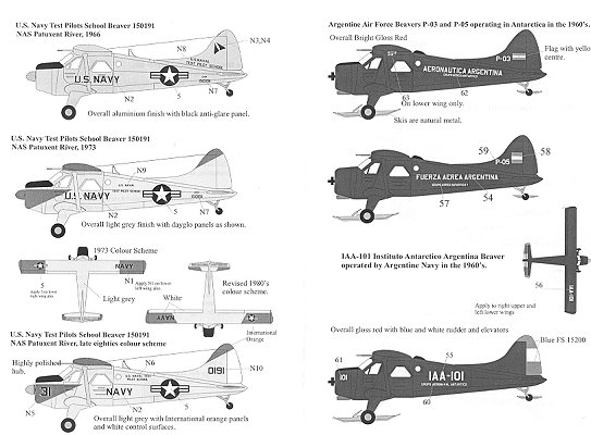 Next are some Beavers from the Argentine Air Force and Navy. The upper two on the instructions are from the Air Force and the lower from the Navy. All are gloss red with natural metal skis.