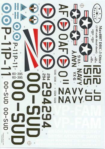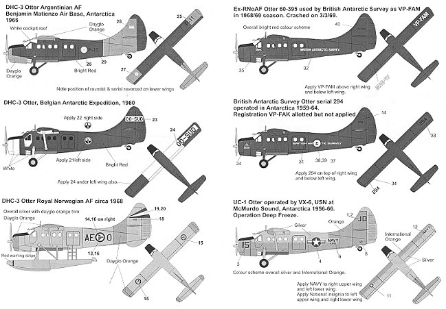 A USN VX-6 Otter in silver and orange from 1956-66 time frame is the final Otter on the sheet.