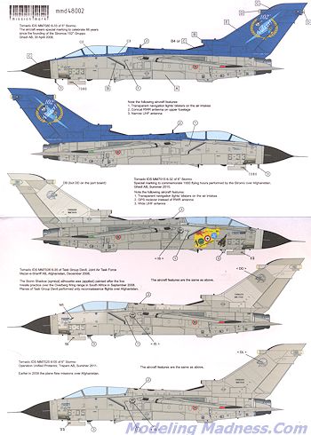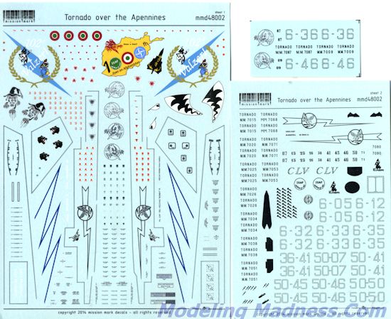 This is Mission Mark's second decal sheet and it is just as superbly done as their first one. This one concentrates on the Tornado IDS, and specifically those flown by Italy. Though the aircraft is being phased out in Germany and the UK, I would imagine that the Italians will keep there for a longer period of time. They always seem to get a decade or so more out of their planes than some other countries.