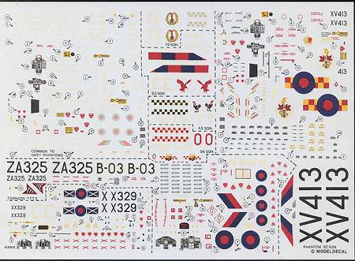 There are enough common decals and stencils to do the Hawk, Tornado, green/grey Phantom and one of the three grey Phantoms. Some of the decals need to be gleaned from the kit, but most of what you need is on the sheet. Modeldecal also provided instrument panel decals. Remember, this is before aftermarket got underway so most kits didn't have quality panels. These decals really helped.