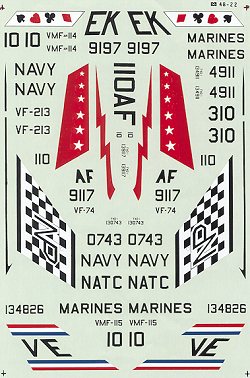Finally, there is AF/110 from VF-74. This aircraft offers a red lightning bolt aft of the cockpit and a red rudder with white stars.