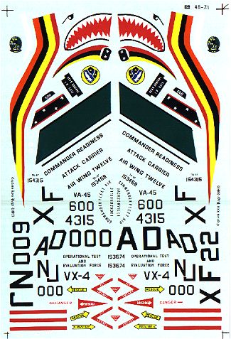 Designed for the Fujimi kit, this is one of Micro/Superscale's earlier releases. It is for some very colorful commander's aircraft from VA-45, VX-4 and VF-126.
