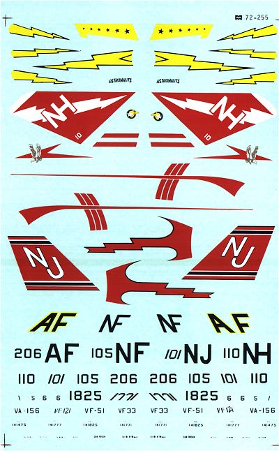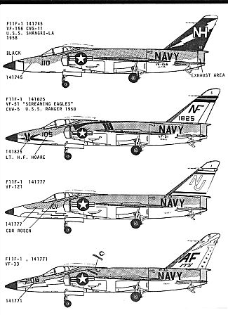 Four Pacific and two Atlantic fleet squadrons flew the F11F, while another half dozen training and develpment squadrons also flew the plane. On this sheet are one Atlantic unit and three Pacific units.