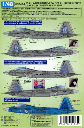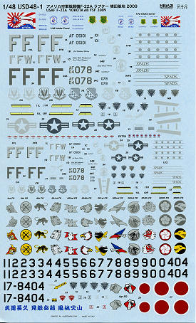 comes a new sheet in 1/48 for the F-22A Raptor. The US aircraft on the sheet is